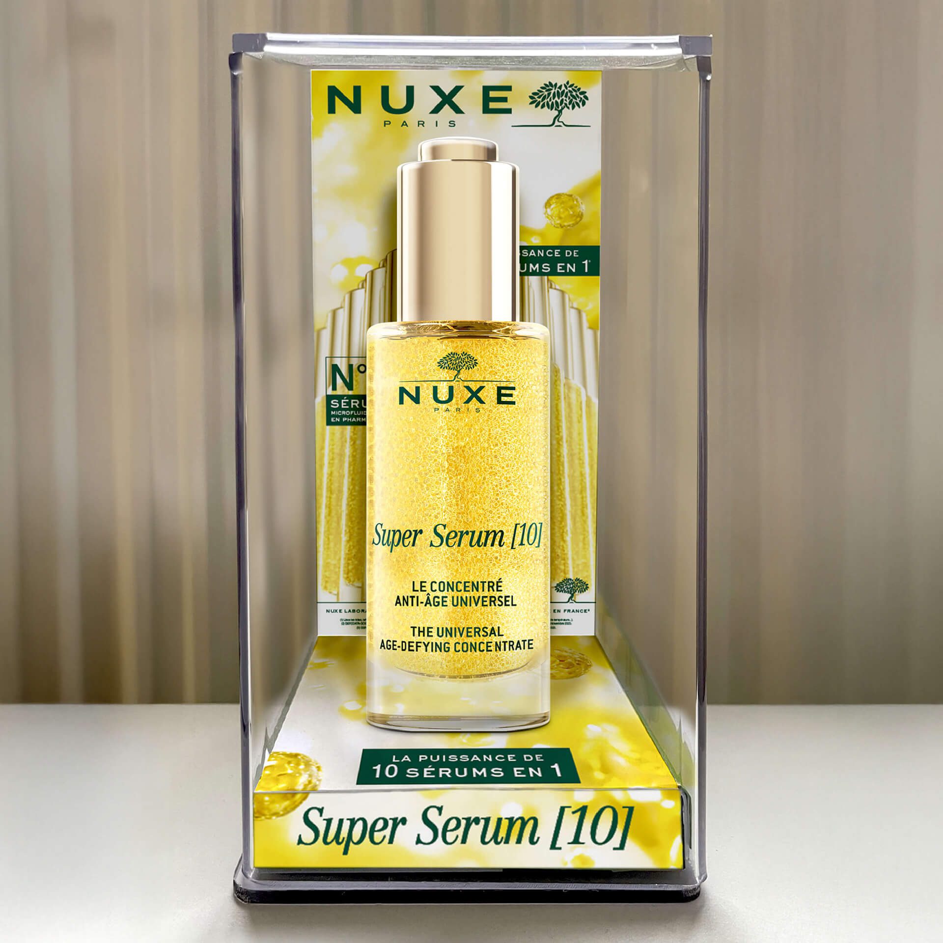 Nuxe, marque icône du skincare en Europe, déploie une campagne d’activation pour promouvoir son Super Sérum. L’objectif : assurer une visibilité maximale à ce produit d’exception, présenté comme 10 sérums en 1 pour paraître 10 ans de moins.