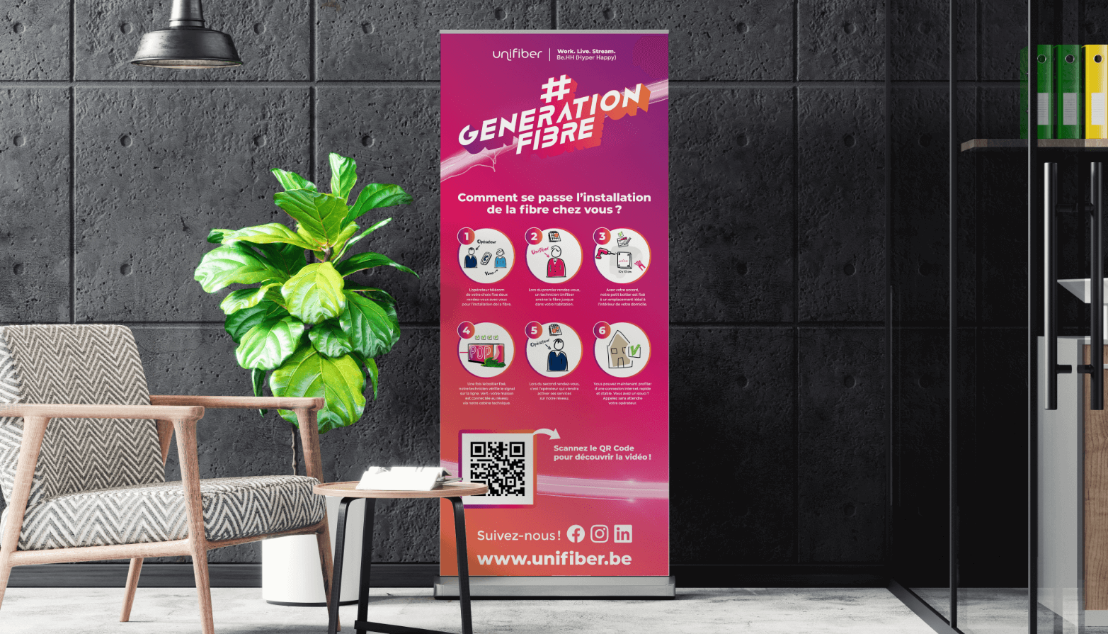 Une technologie qui, malgré son importance, demeure floue pour bon nombre d’utilisateurs. Pour répondre à cette problématique, une campagne didactique a été imaginée, visant à rassurer les Wallons sur l’importance de la fibre. Pour rendre le message accessible et engageant, deux ambassadeurs ont été créés : UNI et FIBER. Leur rôle : vulgariser un univers technologique souvent perçu comme complexe et instaurer une relation de confiance. Leur dynamique permet de simplifier l’information technique et d’humaniser la marque au travers du discours.